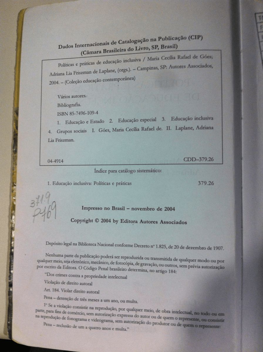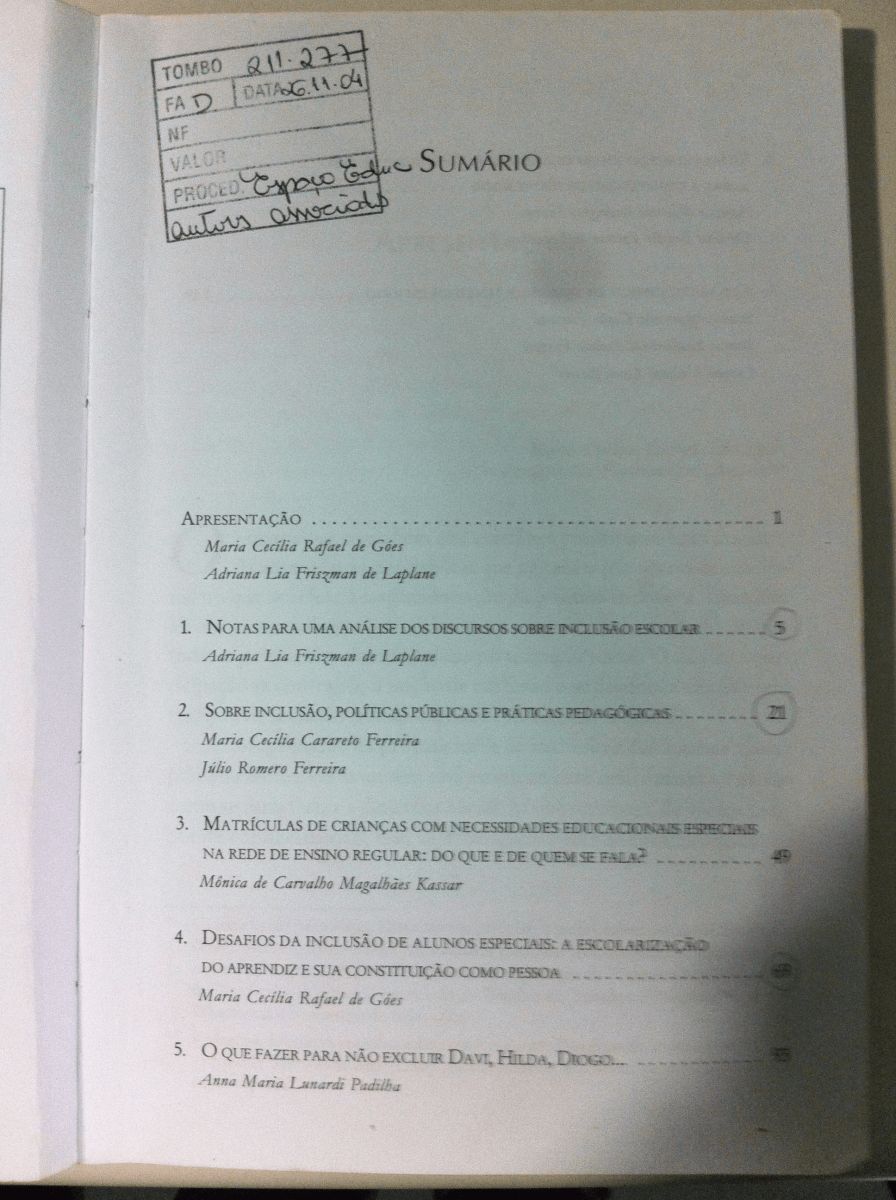 Título: Políticas e práticas de educação inclusiva