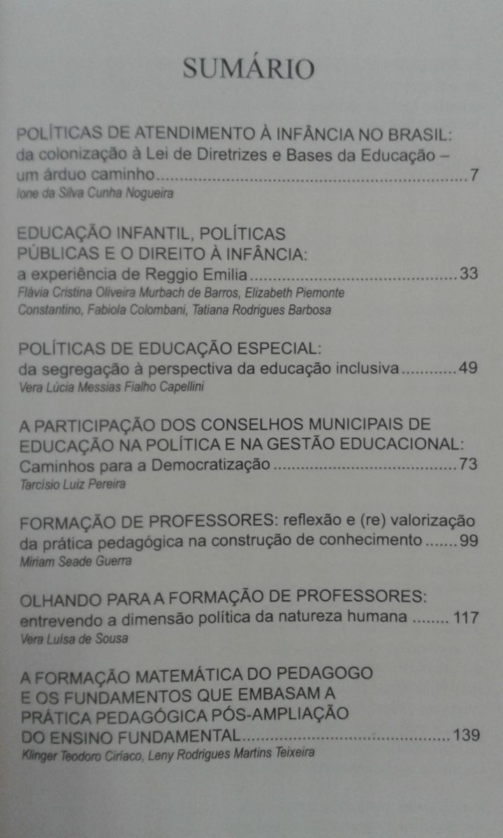 Título: Políticas públicas para a educação no Brasil: infância, Conselhos de Educação e formação de educadores