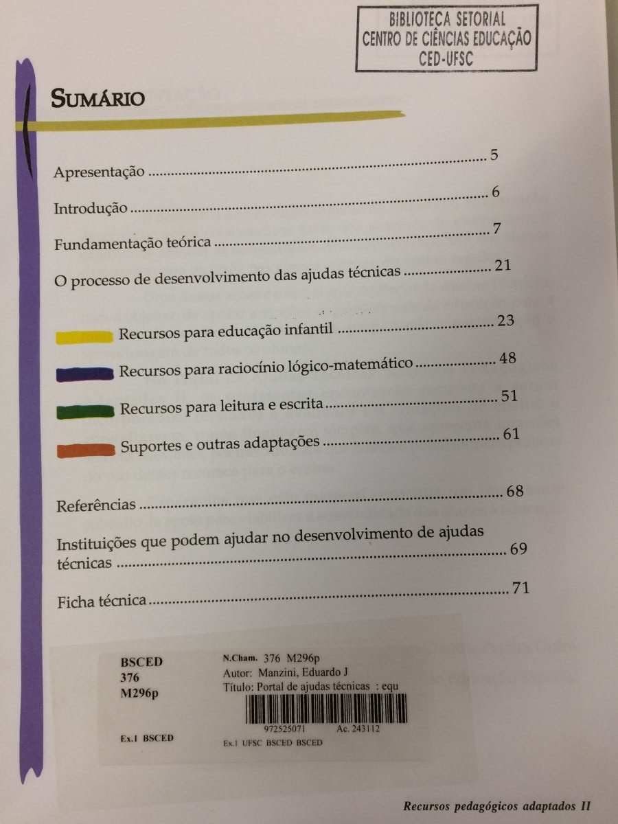 Título: Portal de ajudas técnicas: equipamento e material pedagógico especial para educação, capacitação e recreacão da pessoa com deficiência física: recursos pedagógicos adaptados II