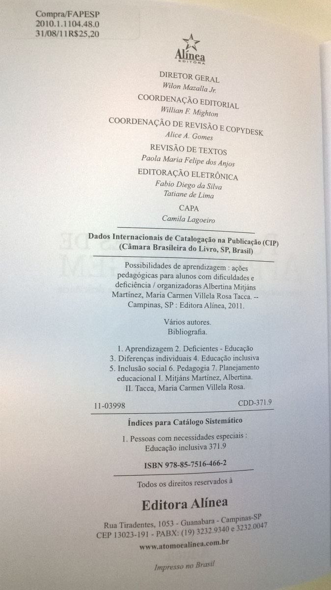 Título: Possibilidades de aprendizagem: ações pedagógicas para alunos com dificuldades e deficiência