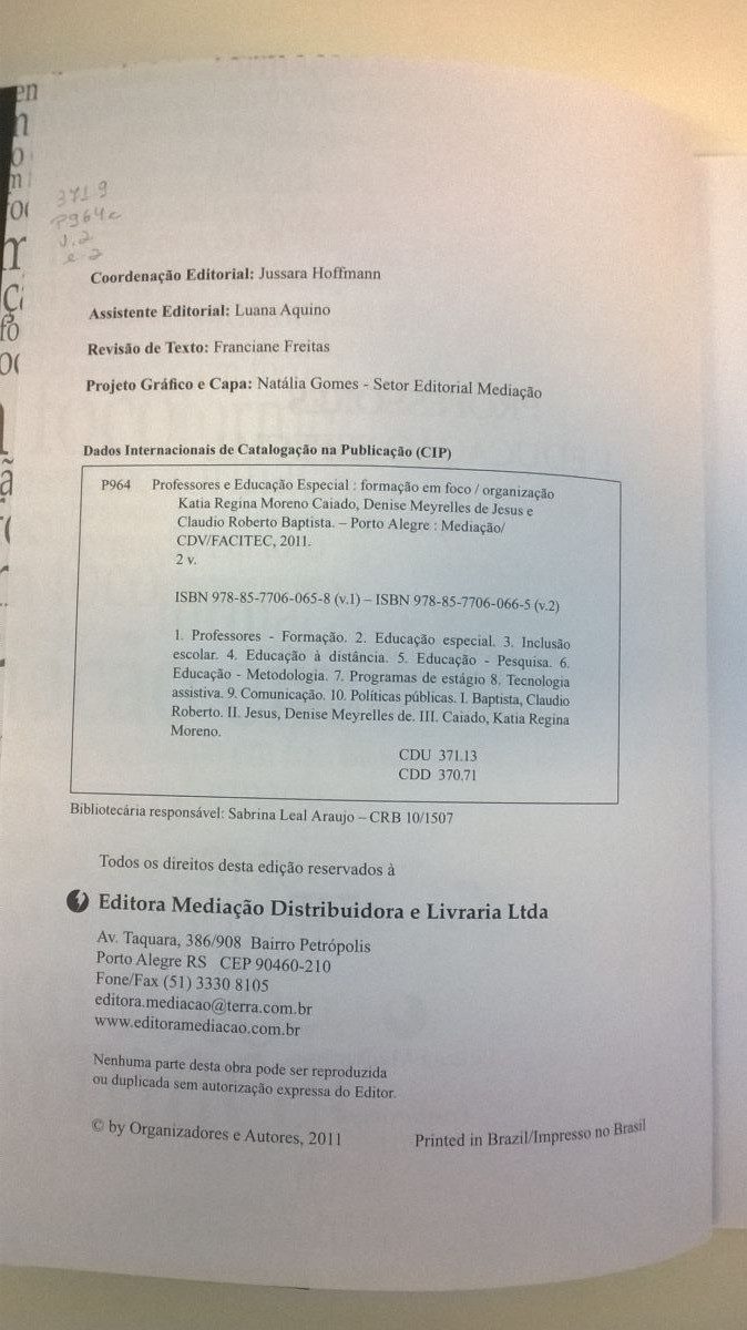 Título: Professores e educação especial: formação em foco – volume 2