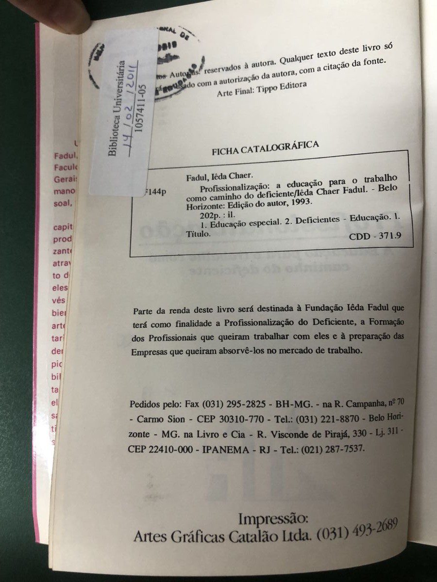 Título: Profissionalização: a educação para o trabalho como caminho do deficiente