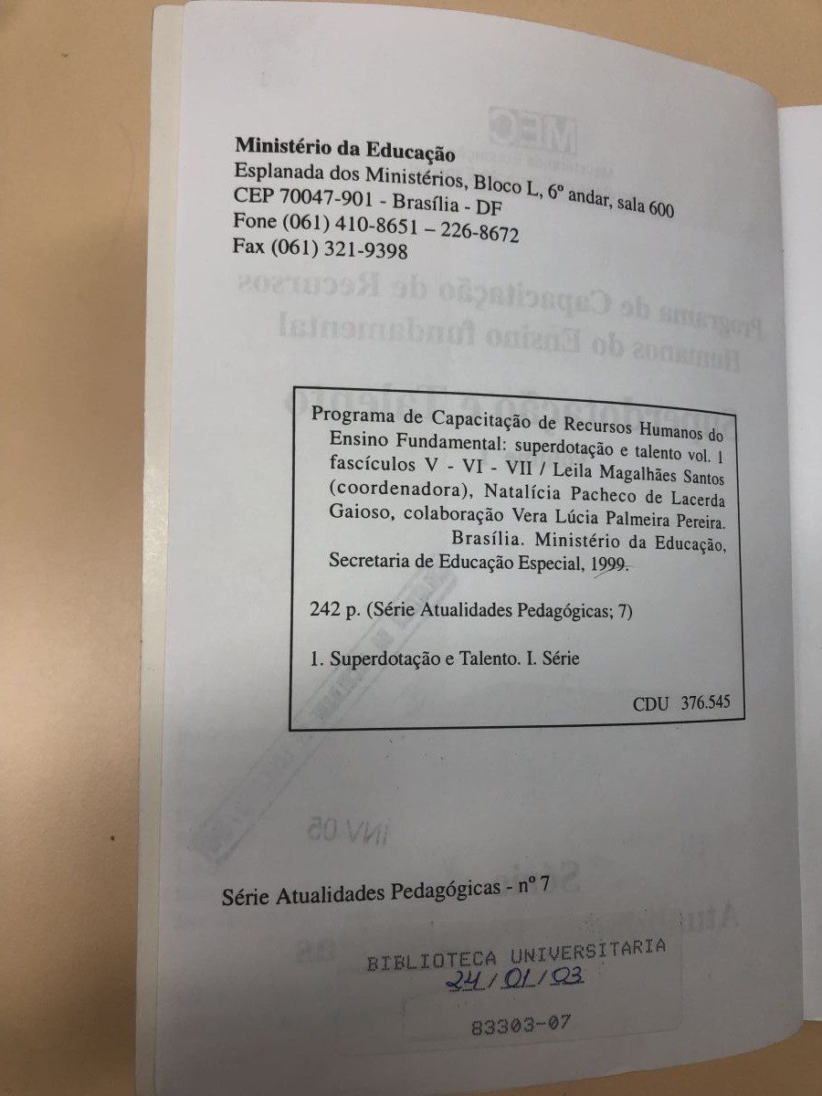 Título: Programa de capacitação de recursos humanos do ensino fundamental: superdotação e talento