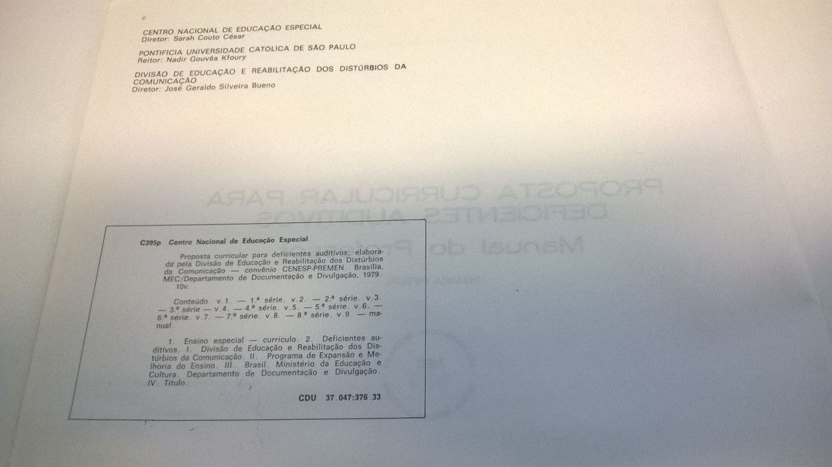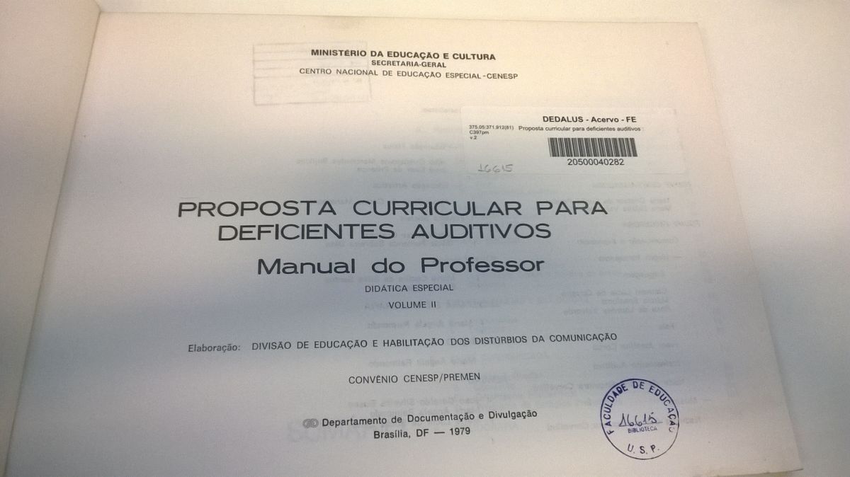 Título: Proposta curricular para deficientes auditivos: manual para o professor – didática especial