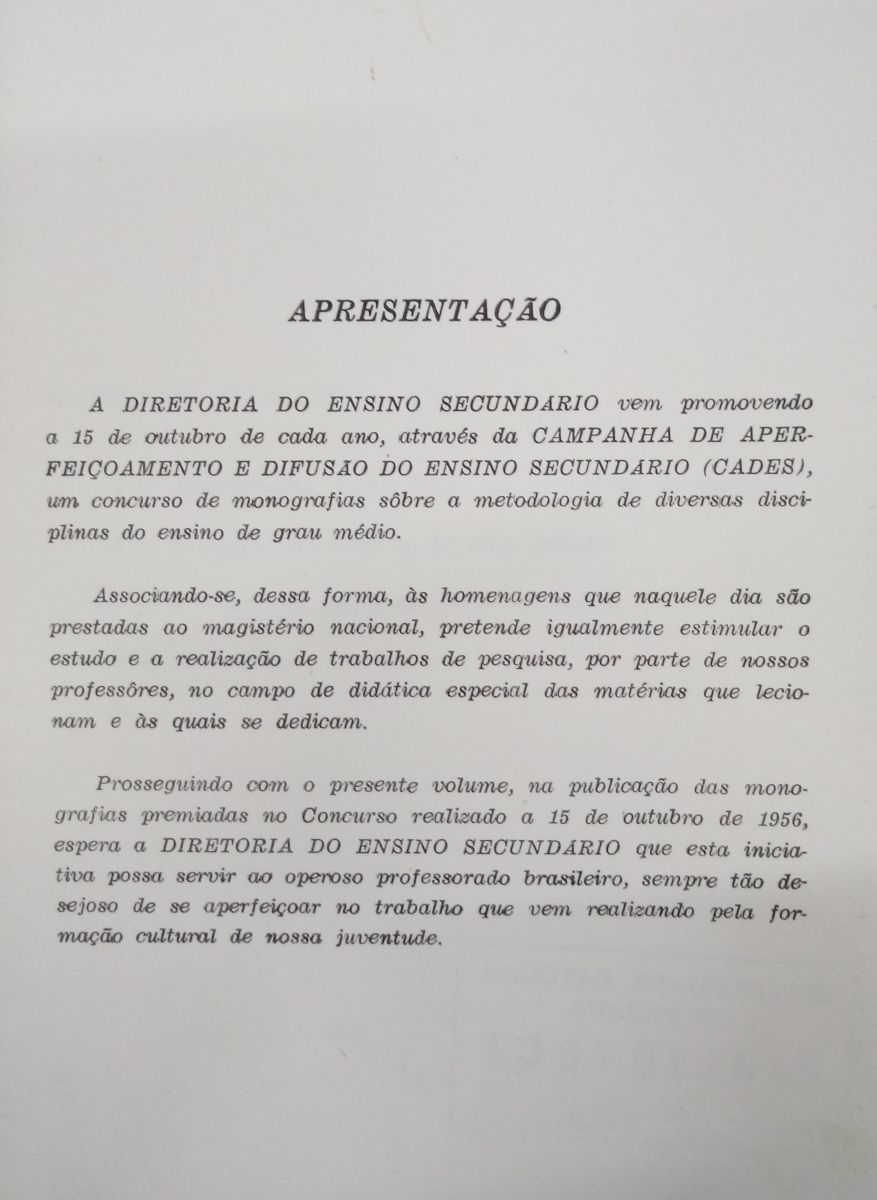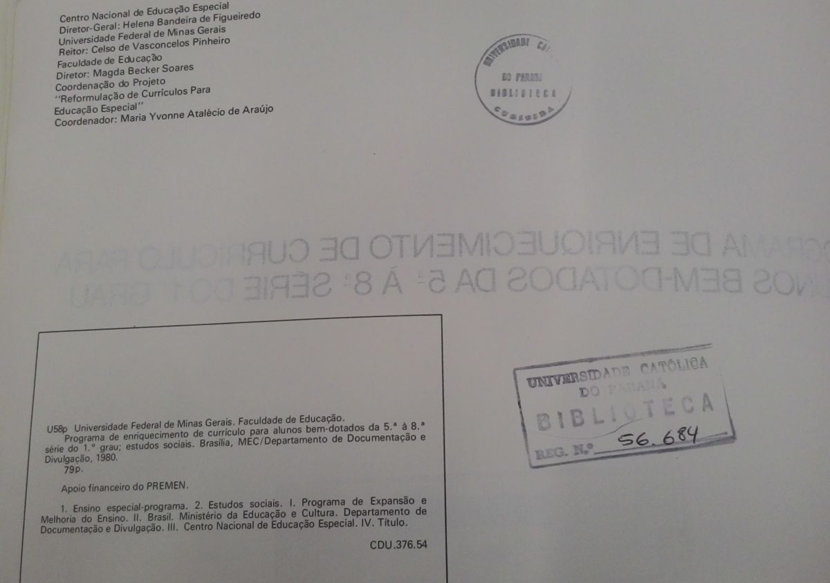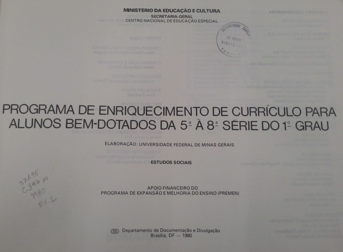 Editora: MEC/, Departamento de documentação e divulgação