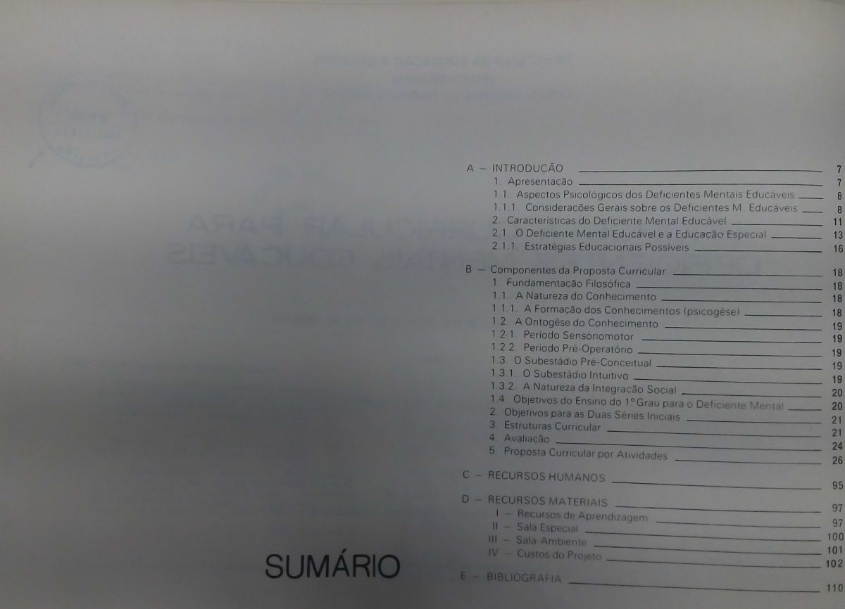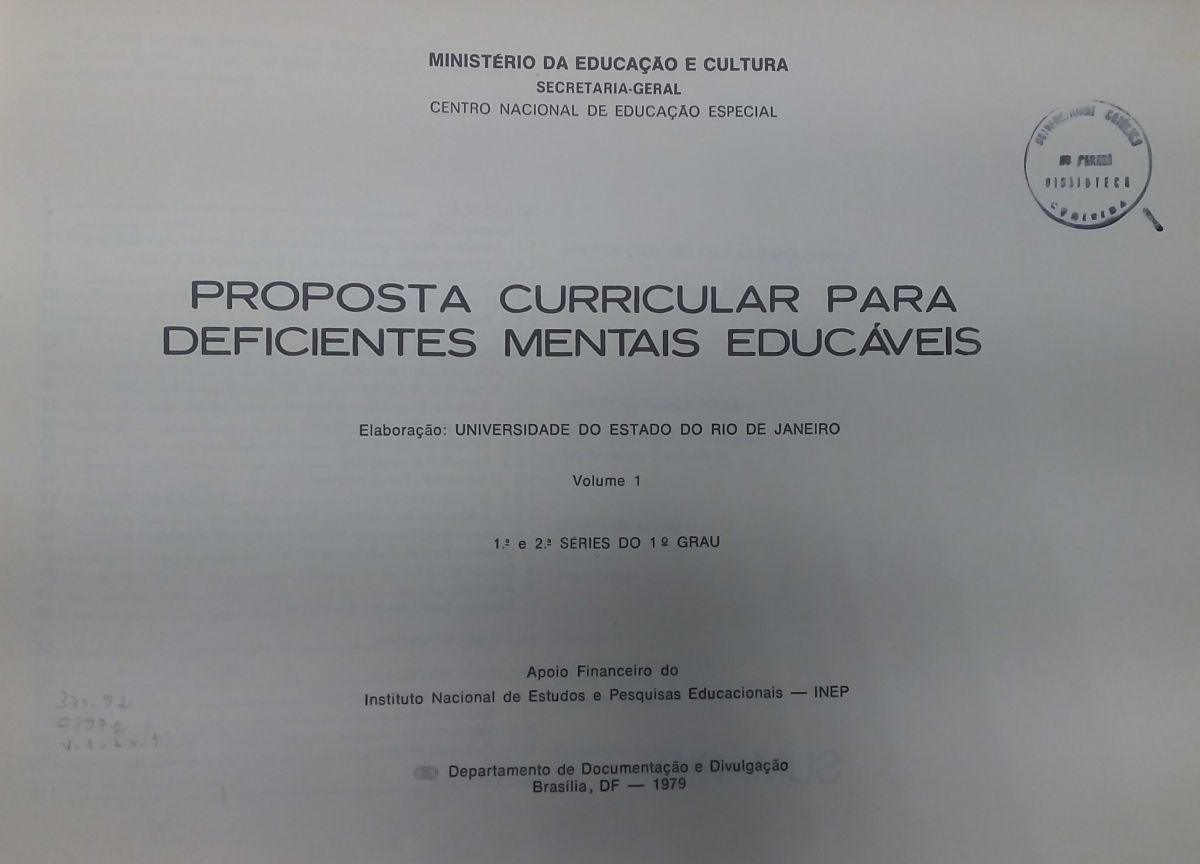 Título: Proposta curricular para deficientes mentais educáveis