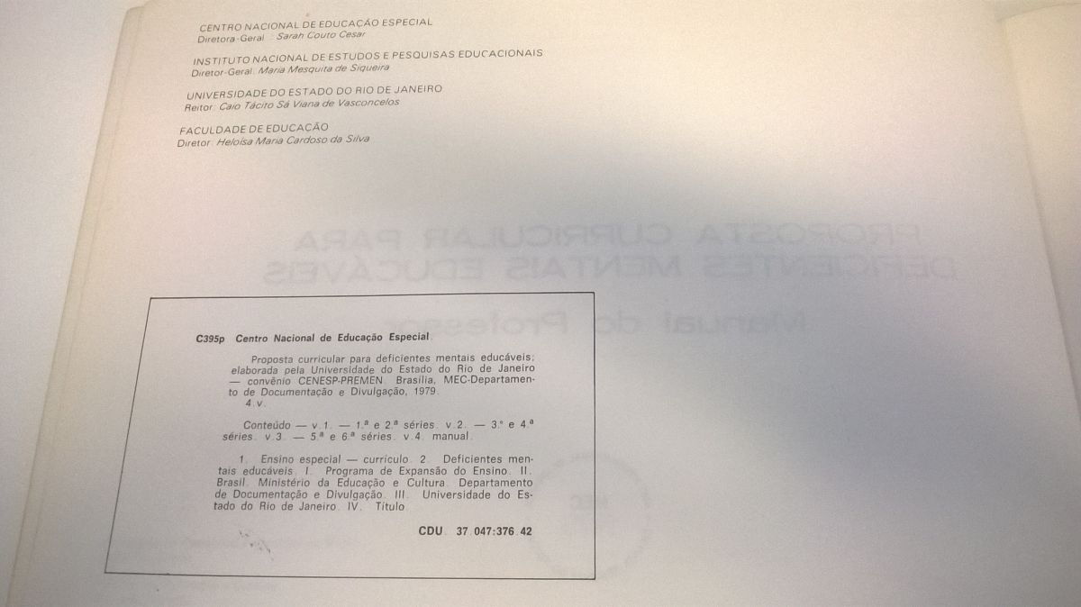 Título: Proposta curricular para deficientes mentais educáveis: manual do professor