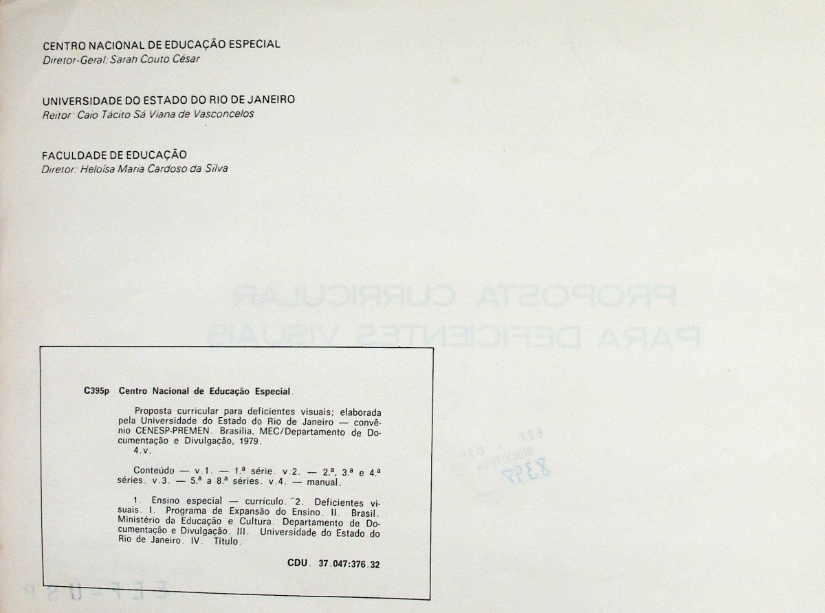 Proposta curricular para deficientes visuais por Universidade do Rio de Janeiro-CENESP-PREMEN