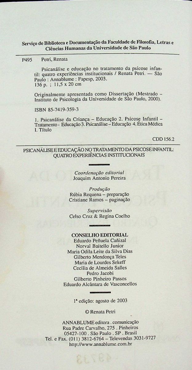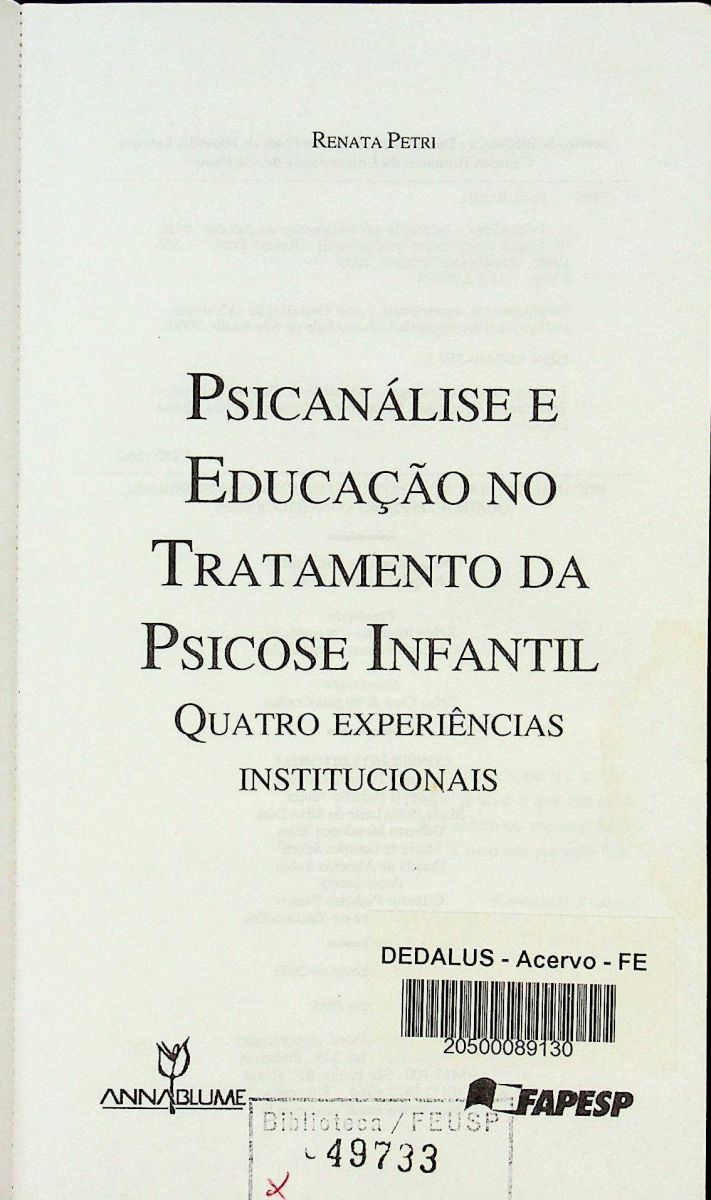 Título: Psicanálise e educação no tratamento da psicose infantil: quatro experiências institucionais