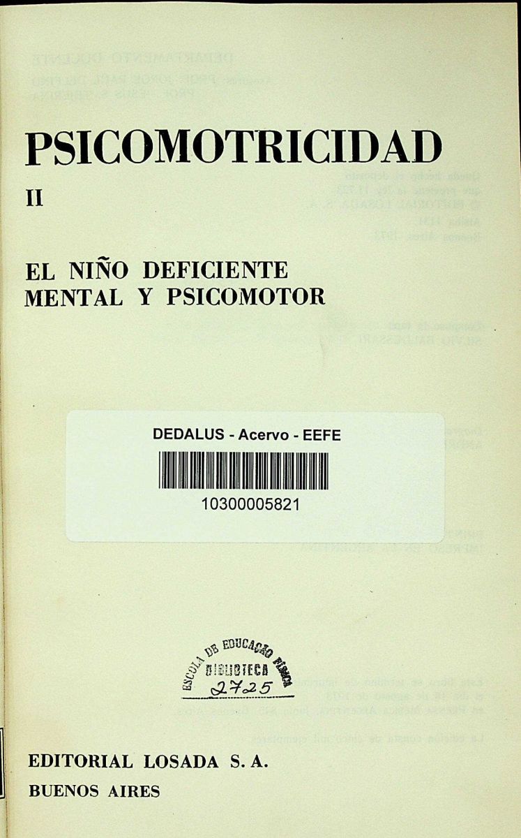 Título: Psicomotricidad II: el nino deficiente mental y psicomotor