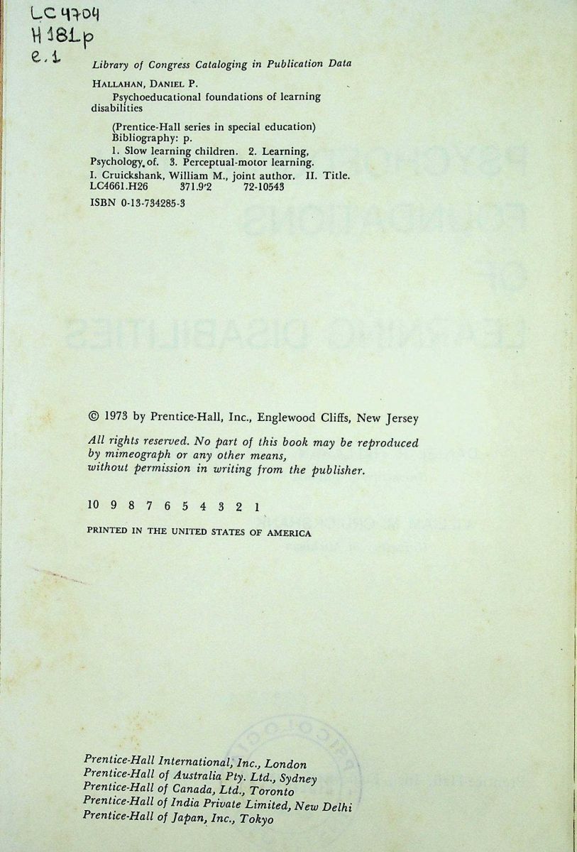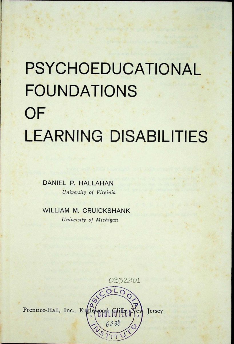 Psychoeducational foundations of learning disabilities por Daniel P. Hallahan; William M. Cruickshank