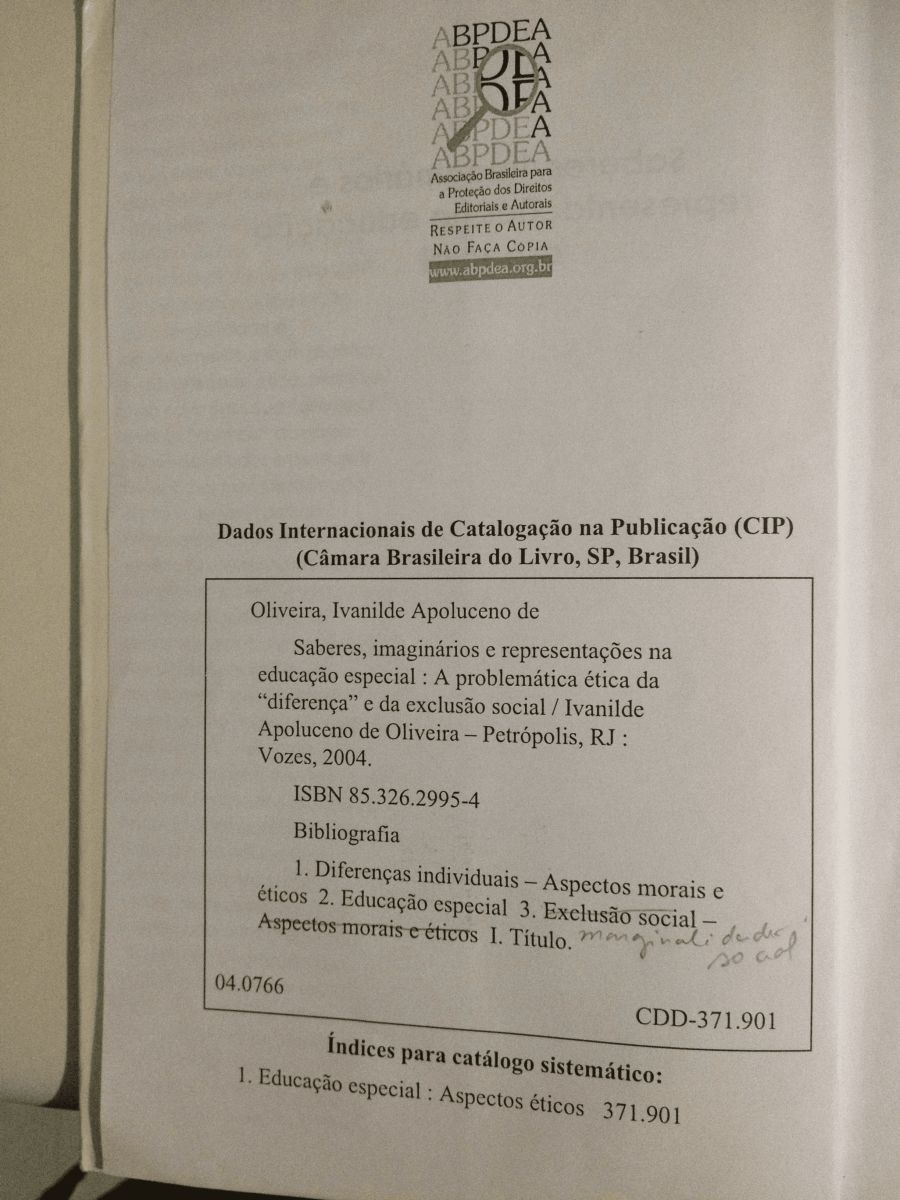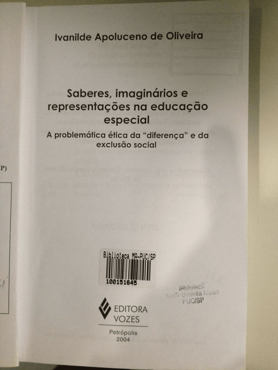 Título: Saberes, imaginários e representações na educação especial: a problemática ética da diferença e da exclusão social