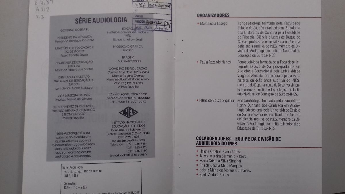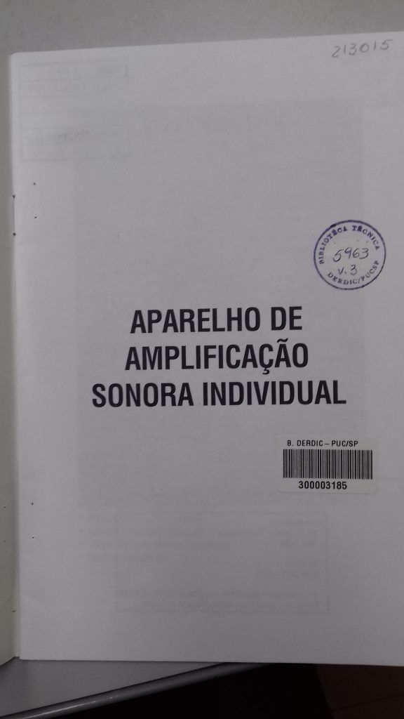Título: Série Audiologia V. 3: aparelho de amplificação sonora individual