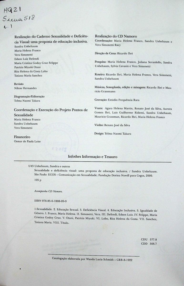 Título: Sexualidade e deficiência visual: uma proposta de educação inclusiva