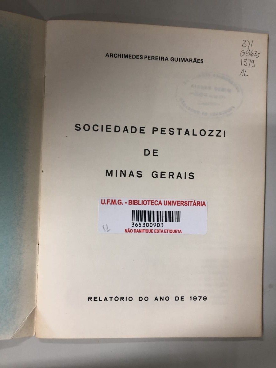Título: Sociedade Pestalozzi de Minas Gerais: Relatório do ano de 1979