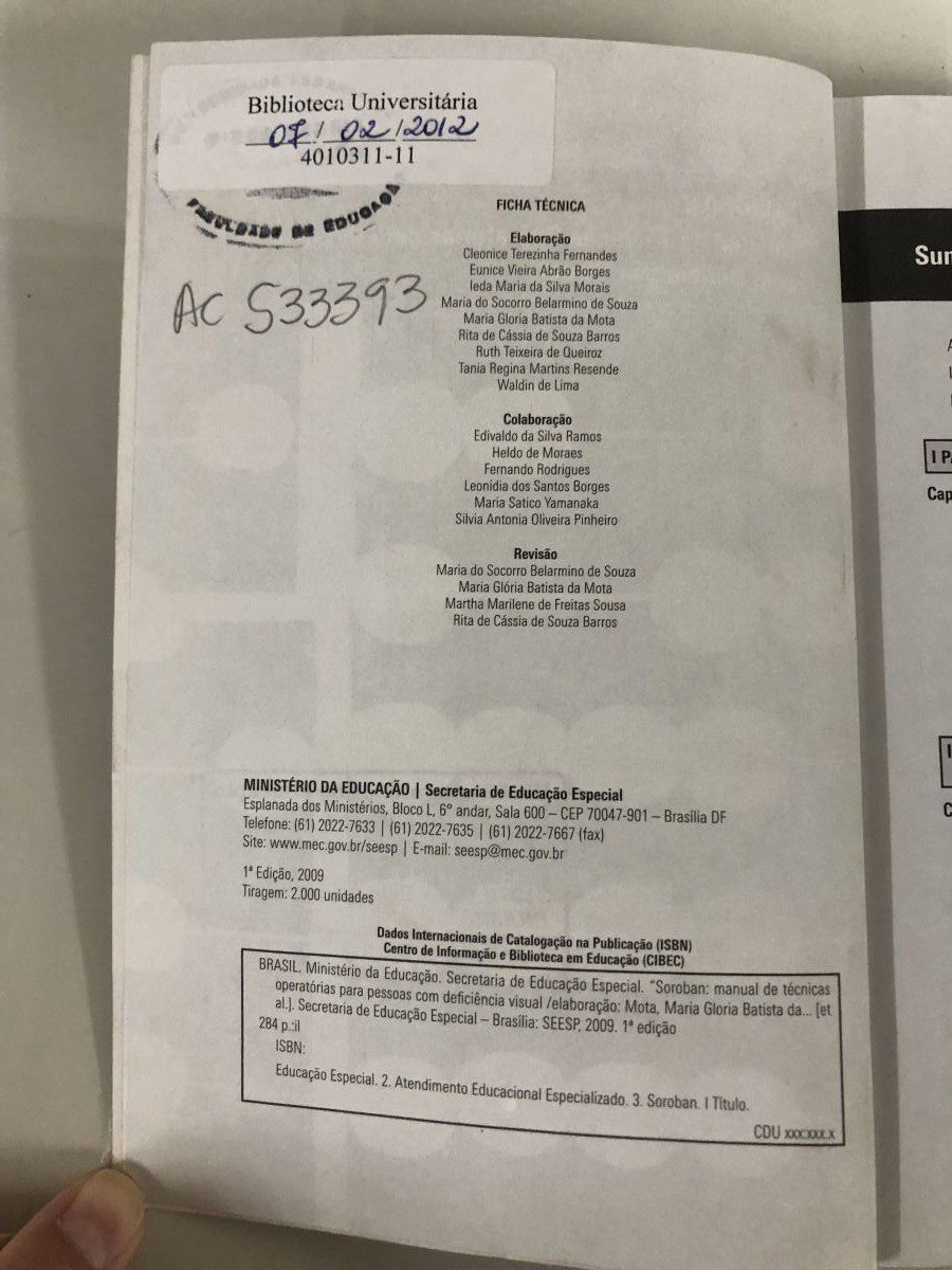 Título: Soroban: manual de técnicas operatórias para pessoas com deficiência visual