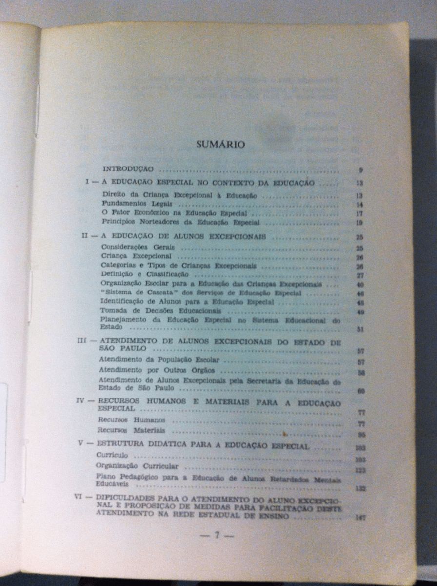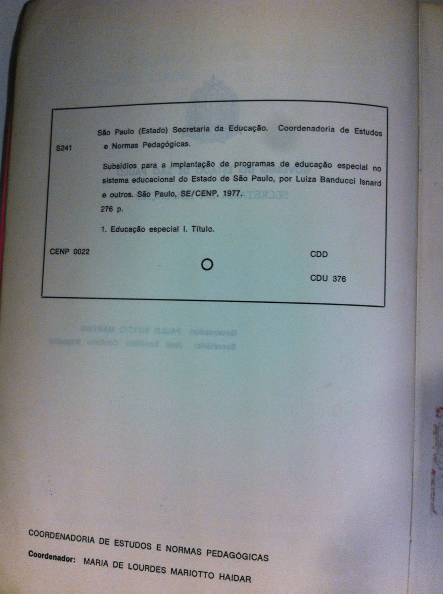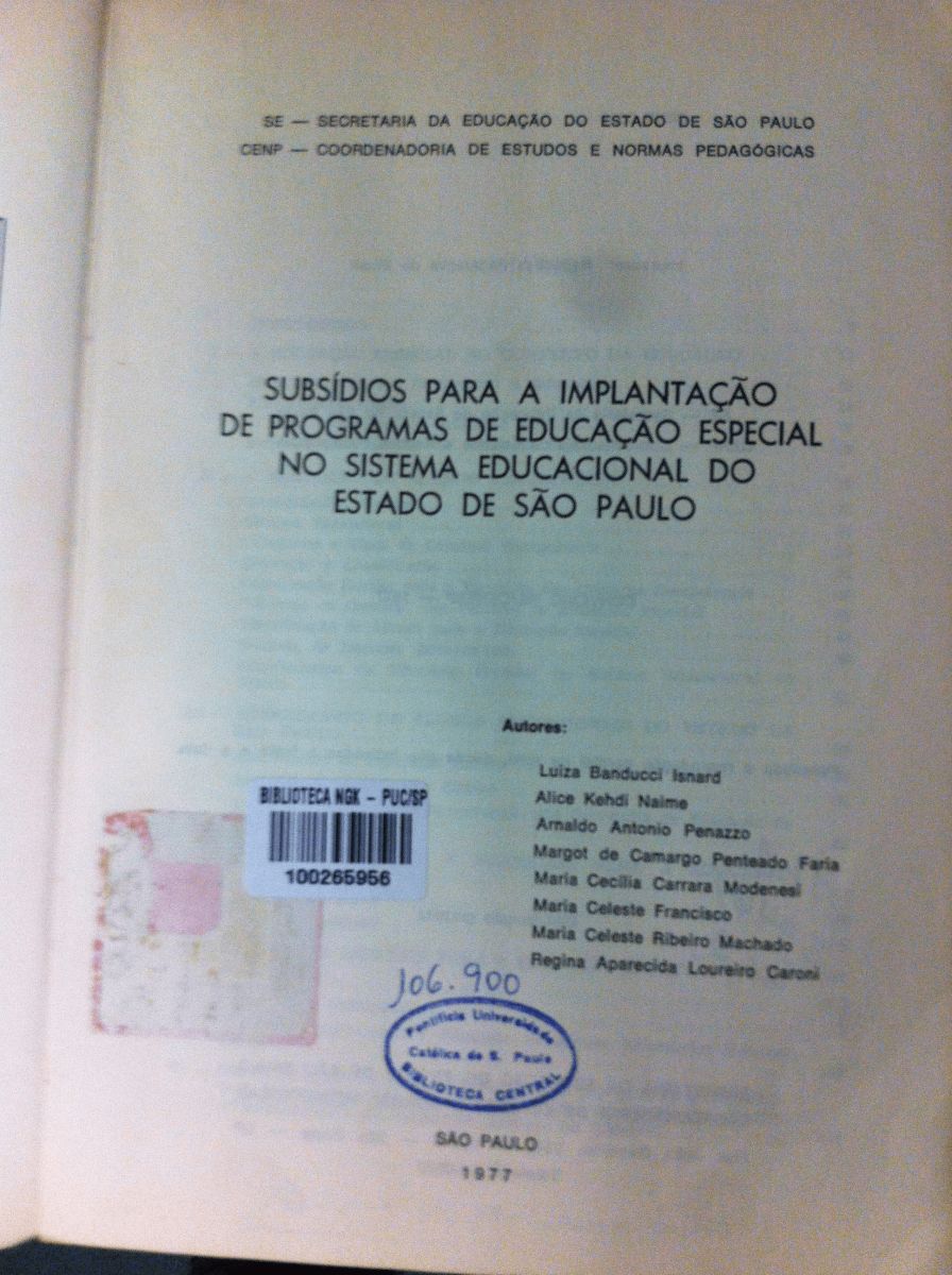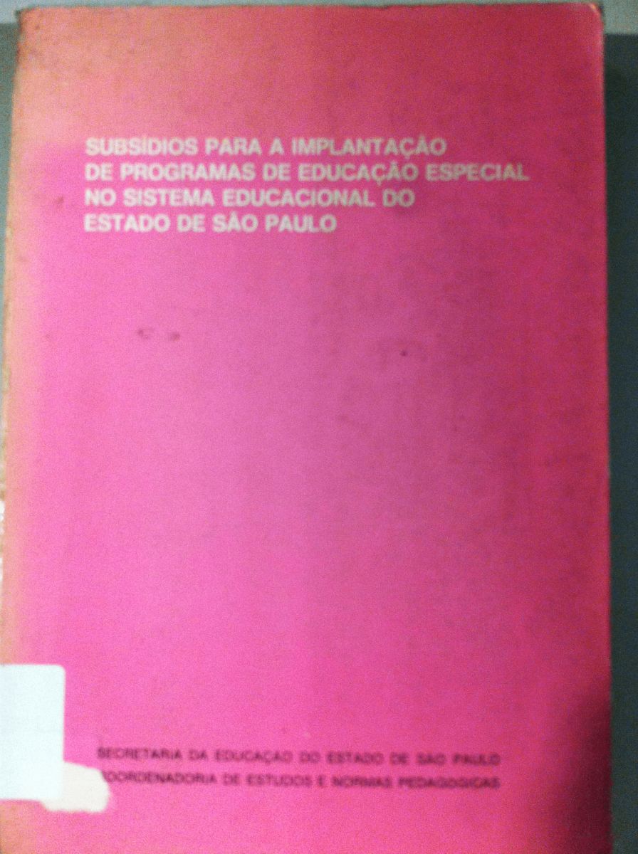 Título: Subsídios para a implantação de programas de educação especial no sistema educacional do Estado de São Paulo
