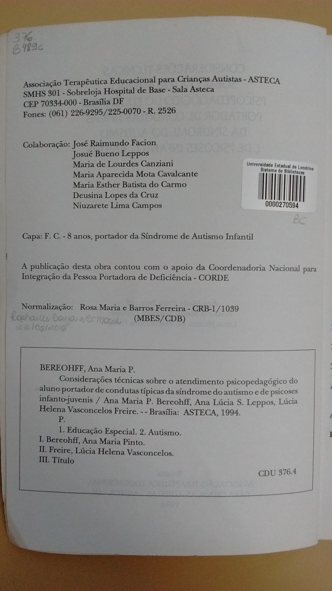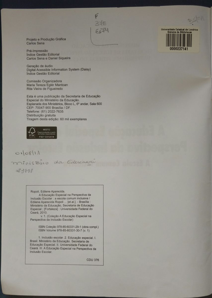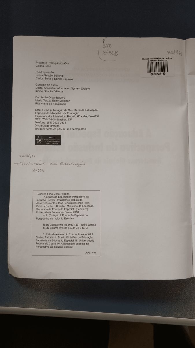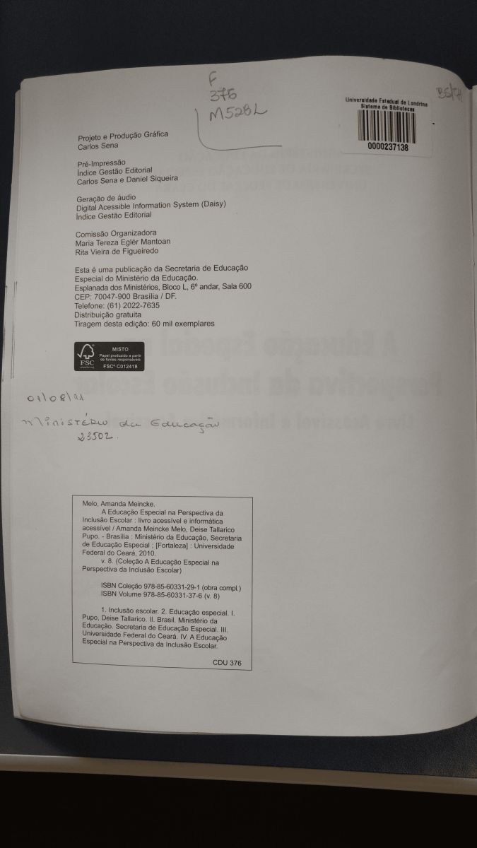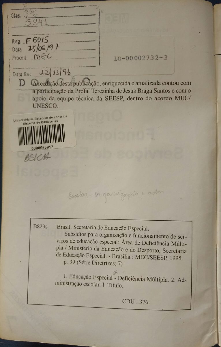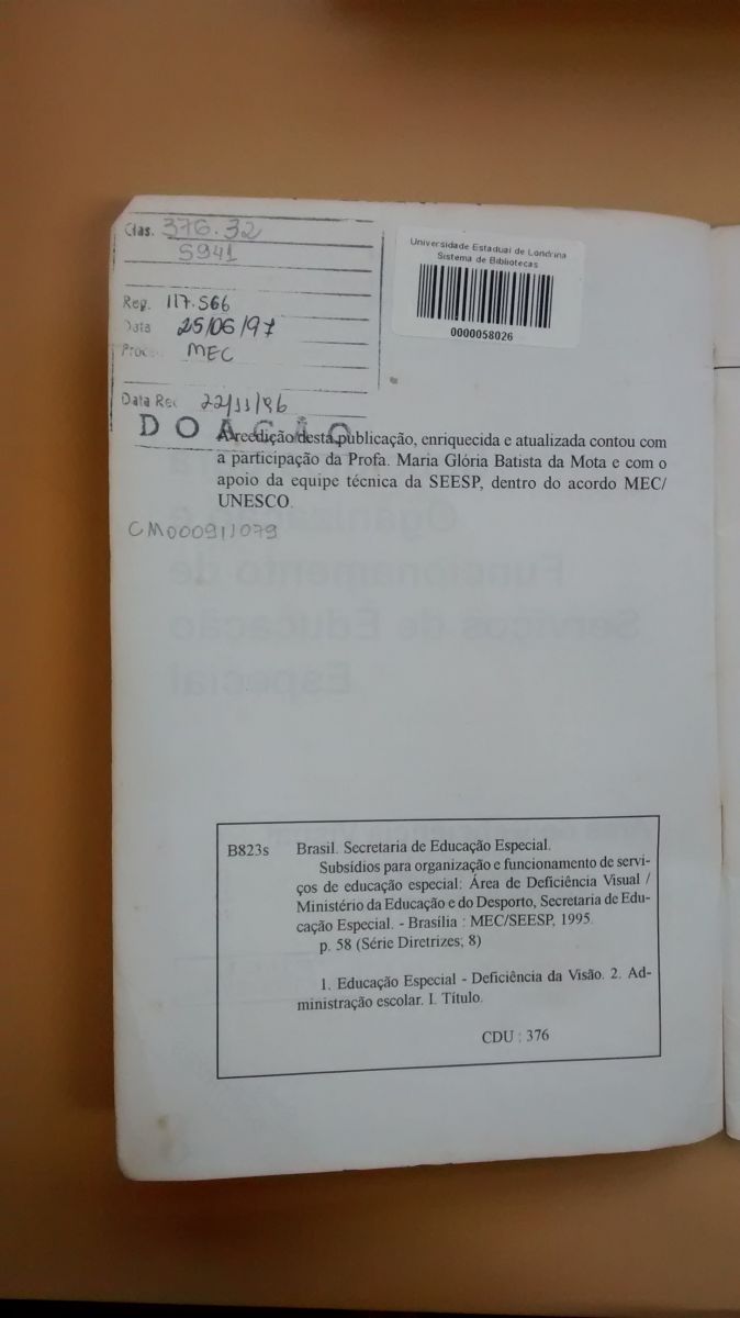 Título: Subsídios para a organização e funcionamento de serviços de educação especial: área de deficiência visual