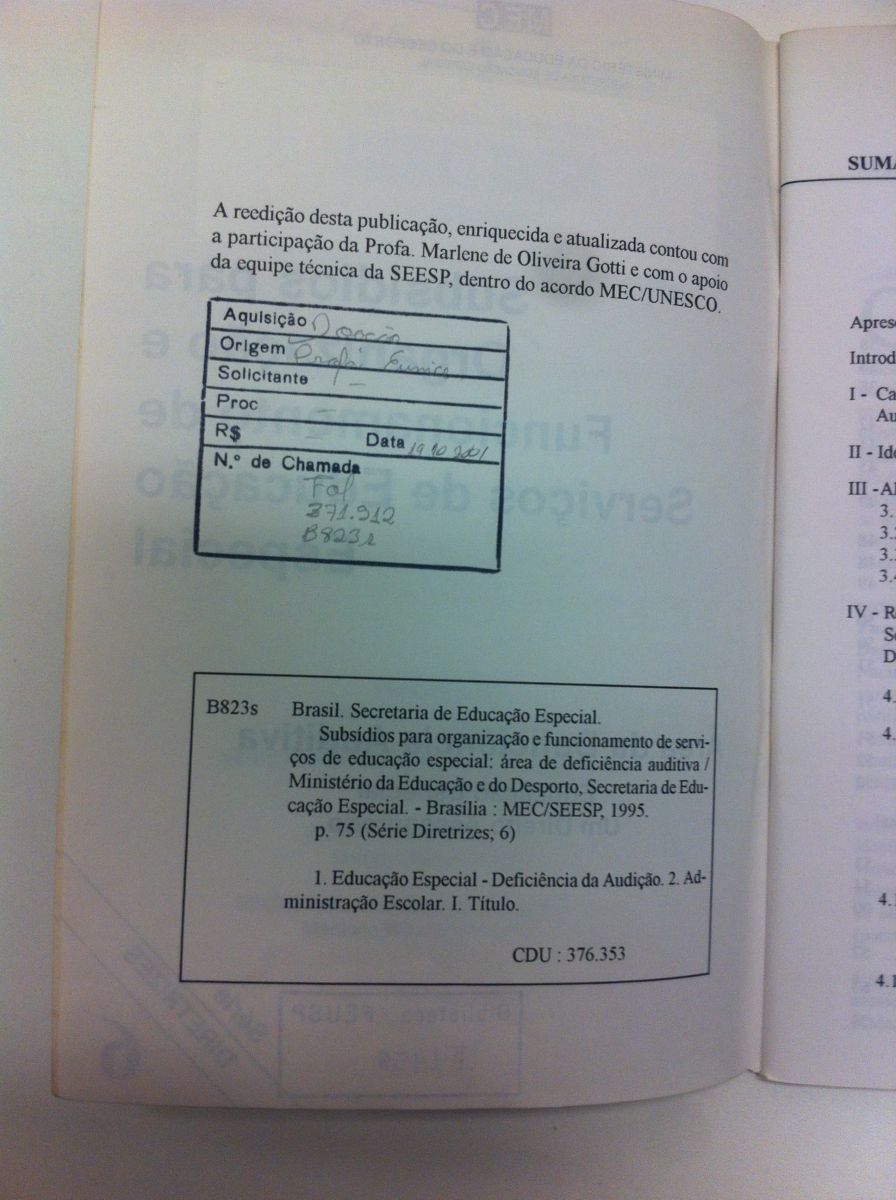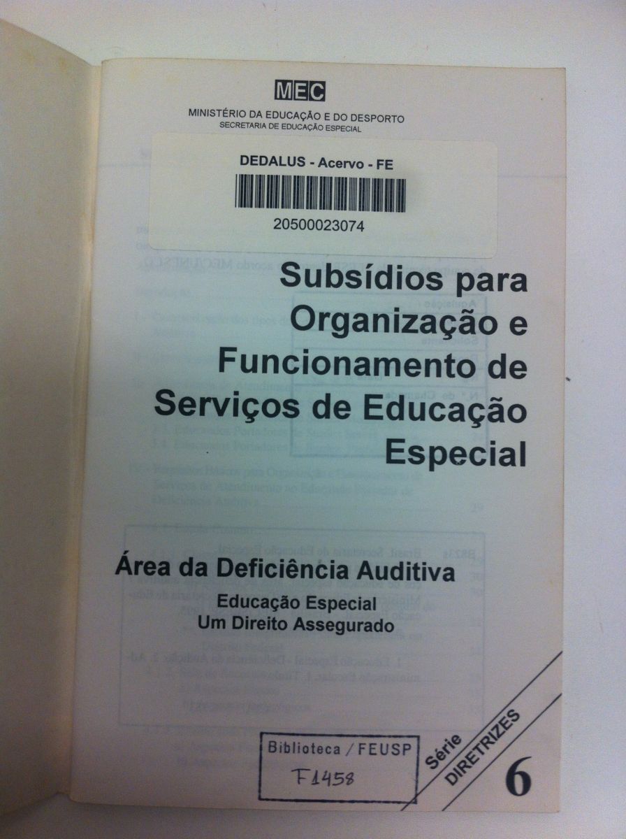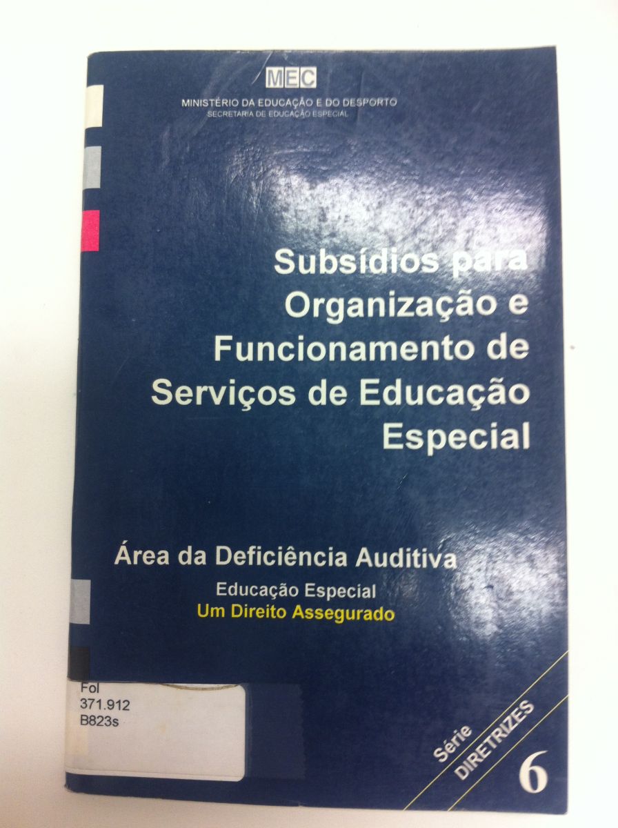 Título: Subsídios para organização e funcionamento de serviços de educação especial: área da deficiência auditiva