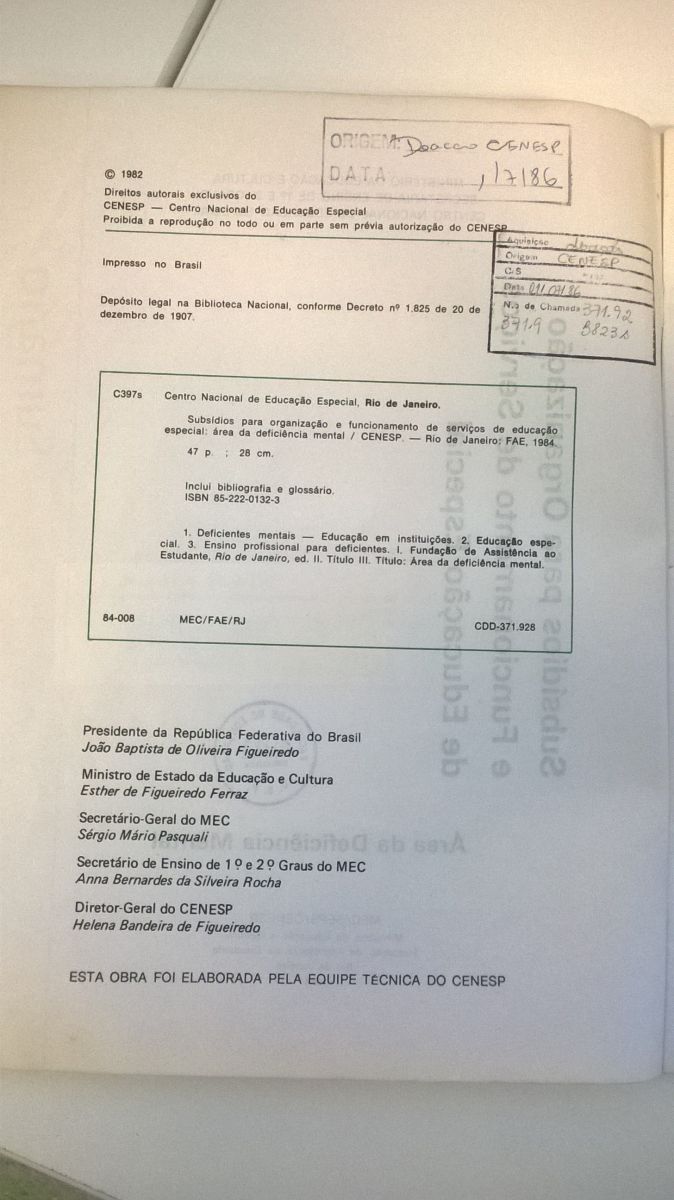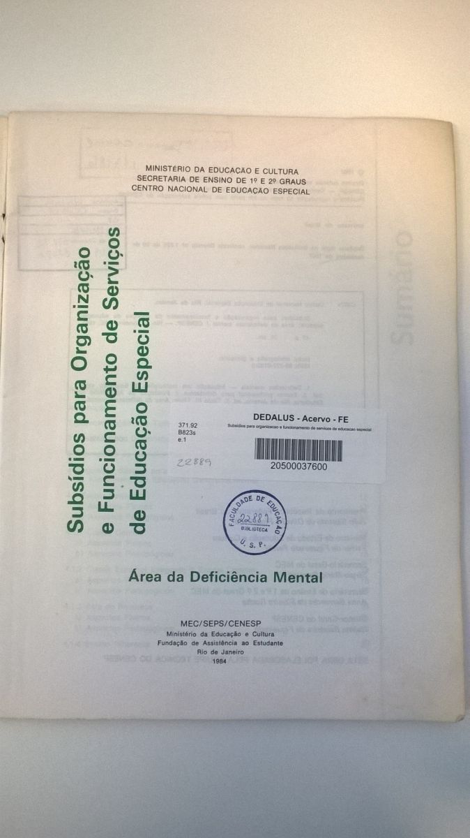 Título: Subsídios para organização e funcionamento de serviços de educação especial: área da deficiência mental