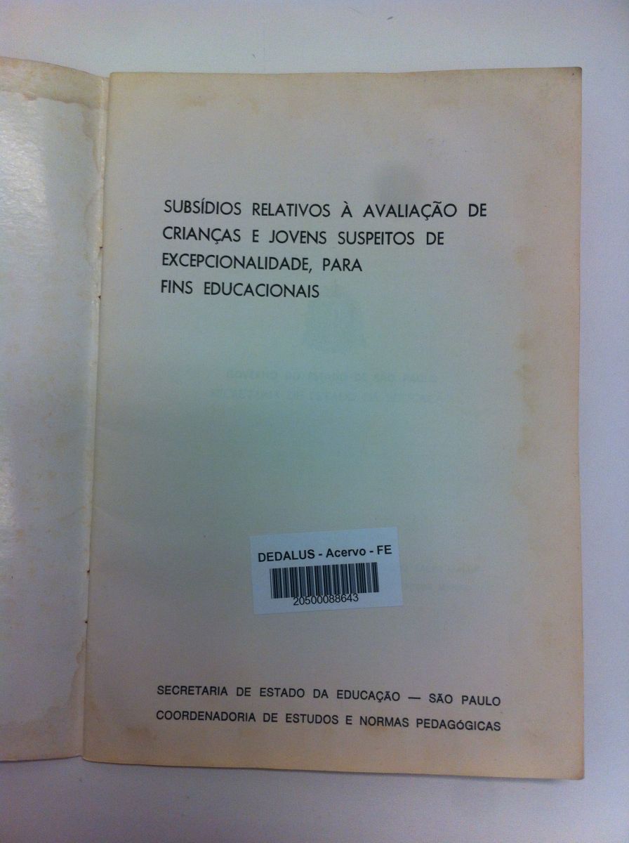 Título: Subsídios relativos à avaliação de crianças e jovens suspeitos de excepcionalidade, para fins educacionais
