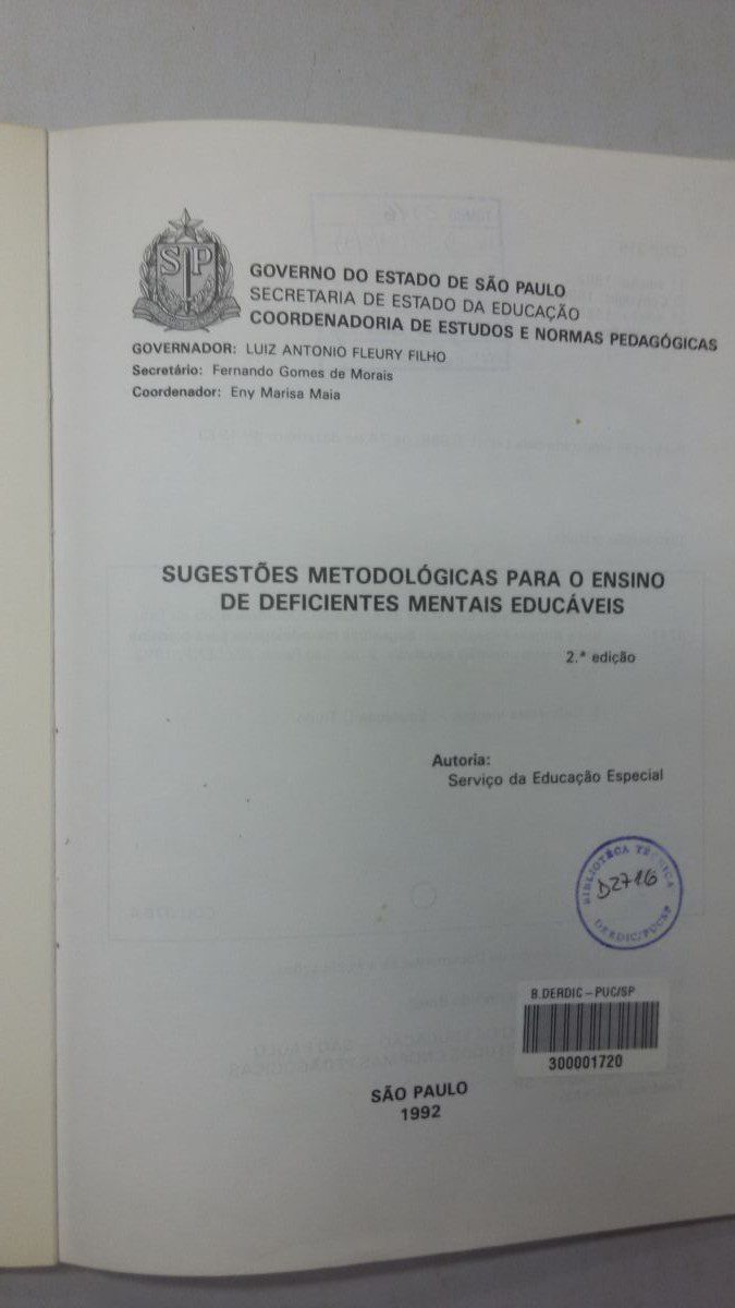 Título: Sugestões metodológicas para o ensino de deficientes mentais educáveis