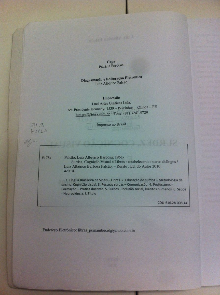 Título: Surdez, cognição visual e Libras: estabelecendo novos diálogos