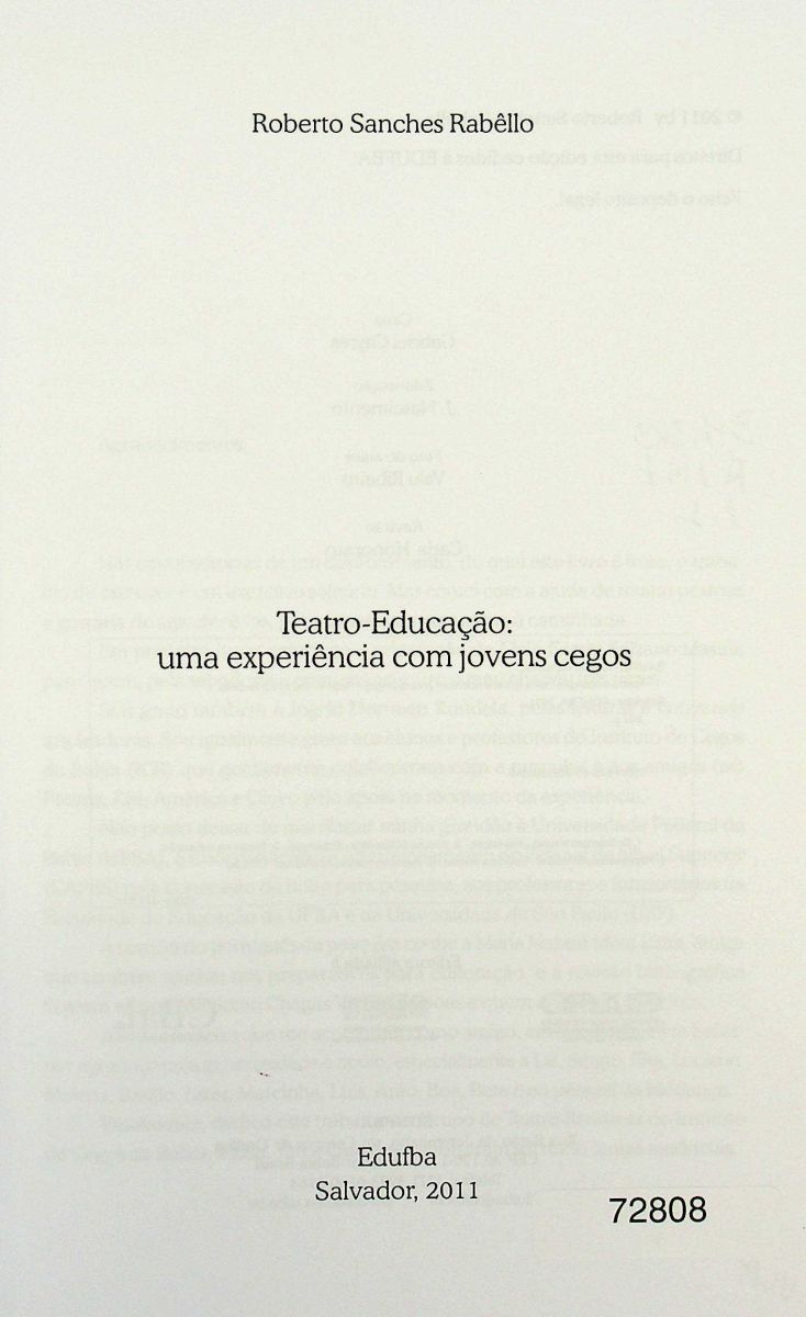 Teatro-educação: uma experiência com jovens cegos por Roberto Sanches Rabello.