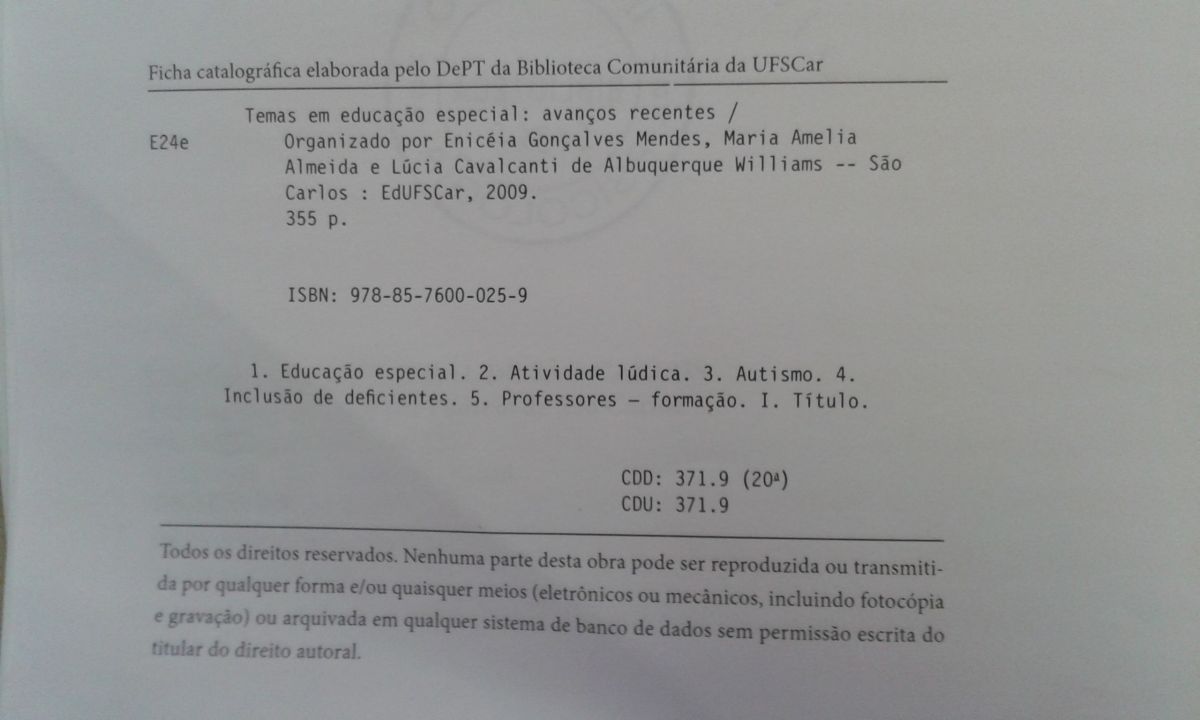 Título: Temas em educação especial