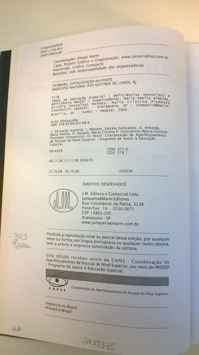 Título: Temas em educação especial: deficiências sensoriais e deficiência mental