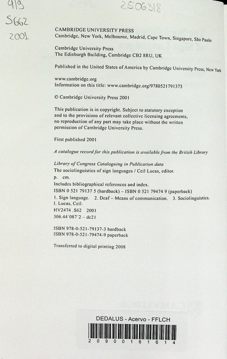 Título: The sociolinguistics of the sign language