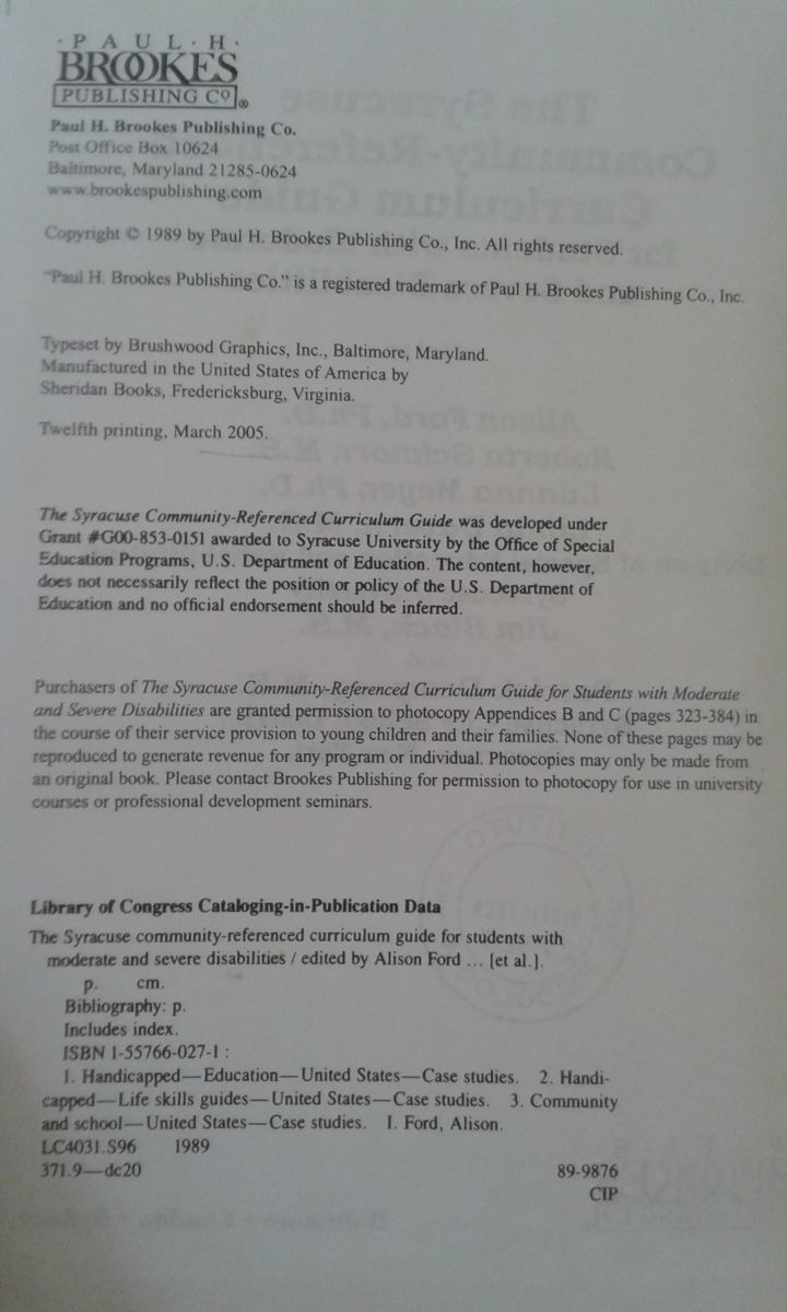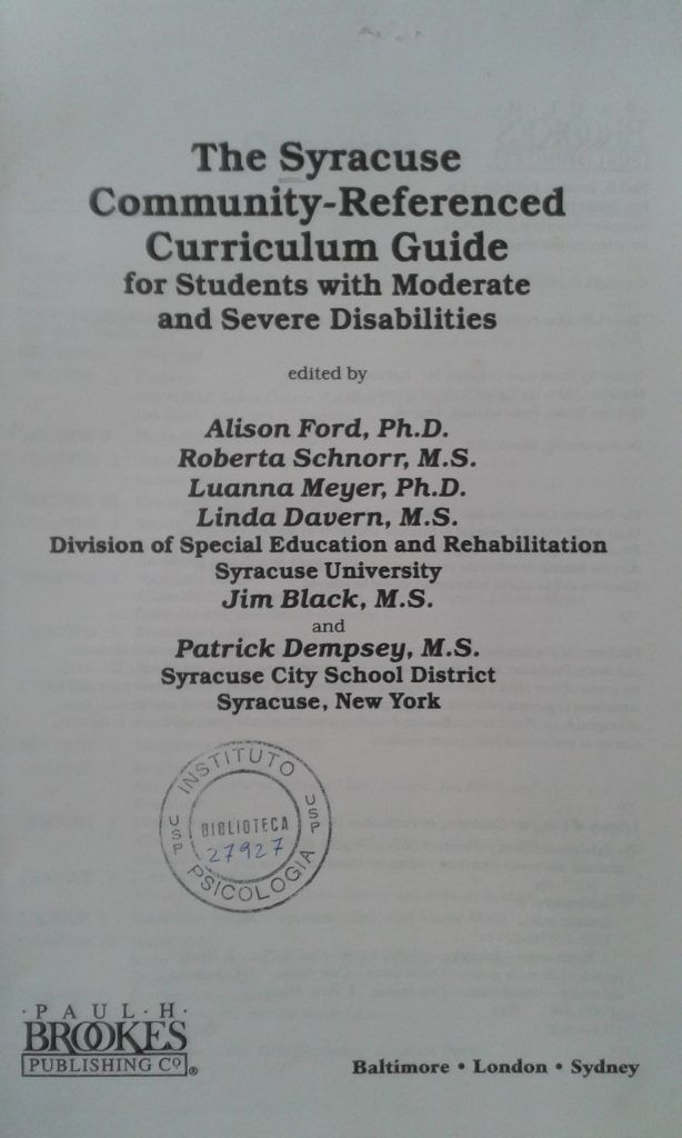 Título: The Syracuse Community-Referenced: curriculum guide for students with moderate and severe disabilities