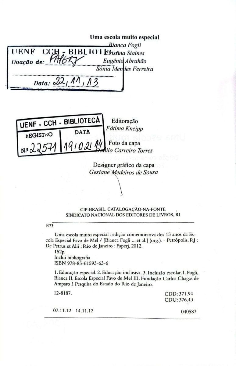 Título: Uma escola muito especial: edição comemorativa dos 15 anos da Escola Especial Favo de Mel