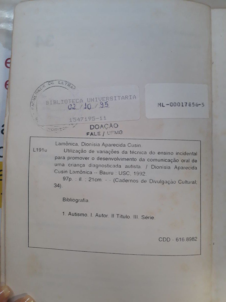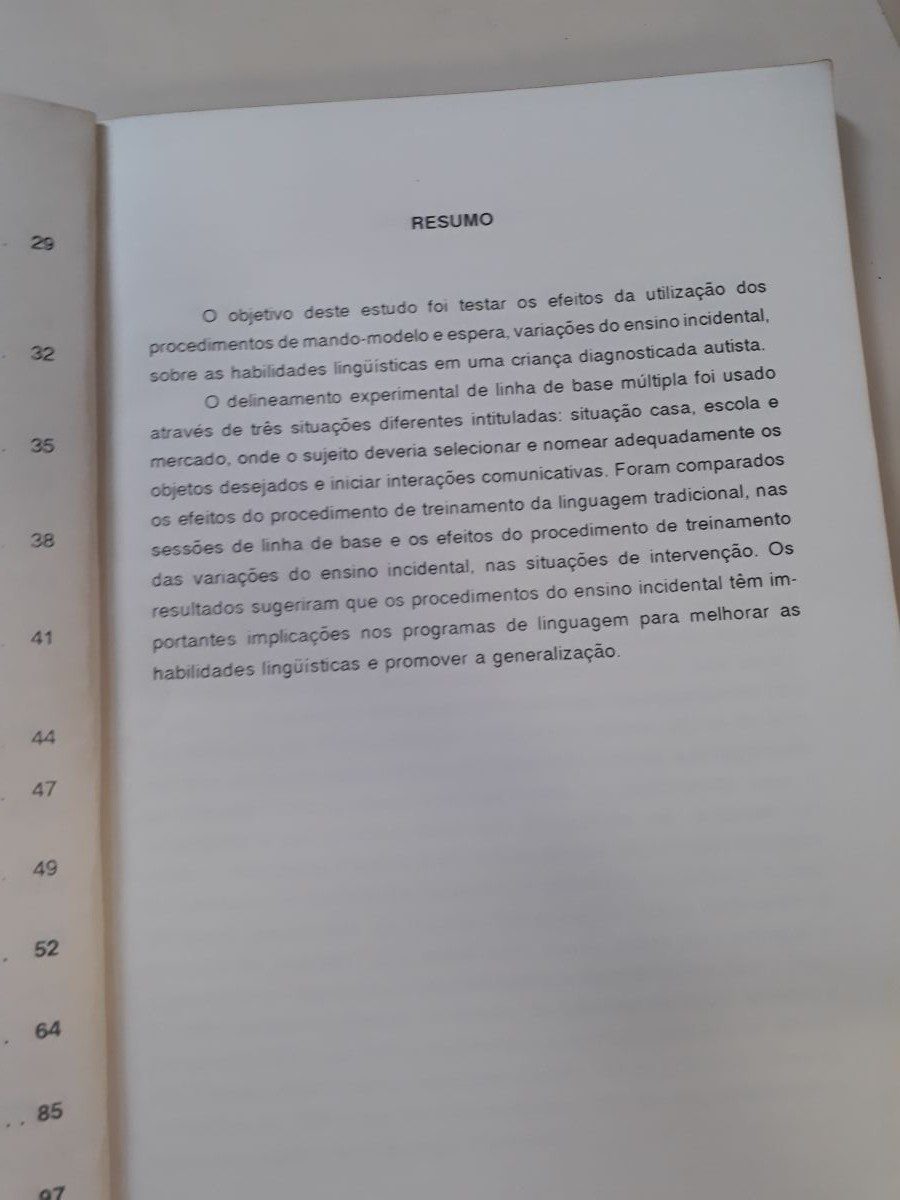 Título: Utilização de variações da tecnica do ensino incidental para promover o desenvolvimento da comunicação oral de uma criança diagnosticada autista