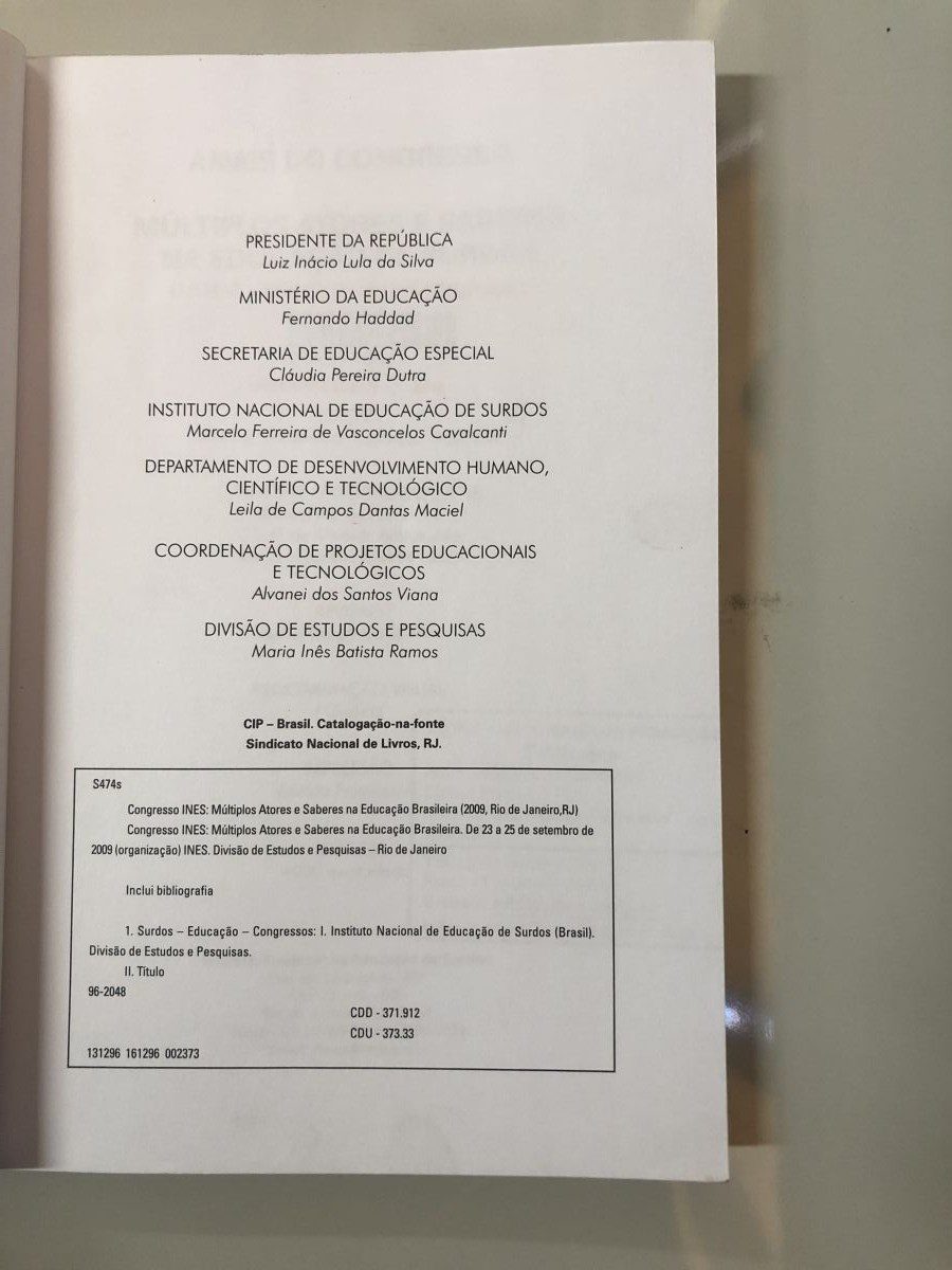 Autor/Organizador: Instituto Nacional de Educação de Surdos