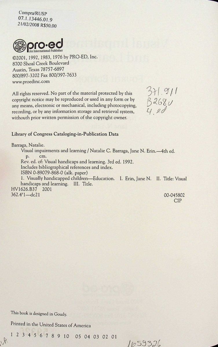 Autor/Organizador: Natalie Barraga; Jane N Erin