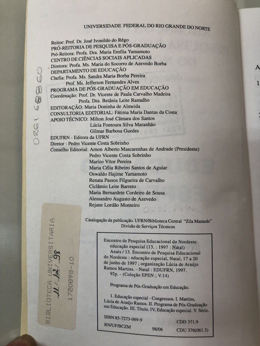 Título: XIII Encontro de Pesquisa Educacional do Nordeste: Educação Especial